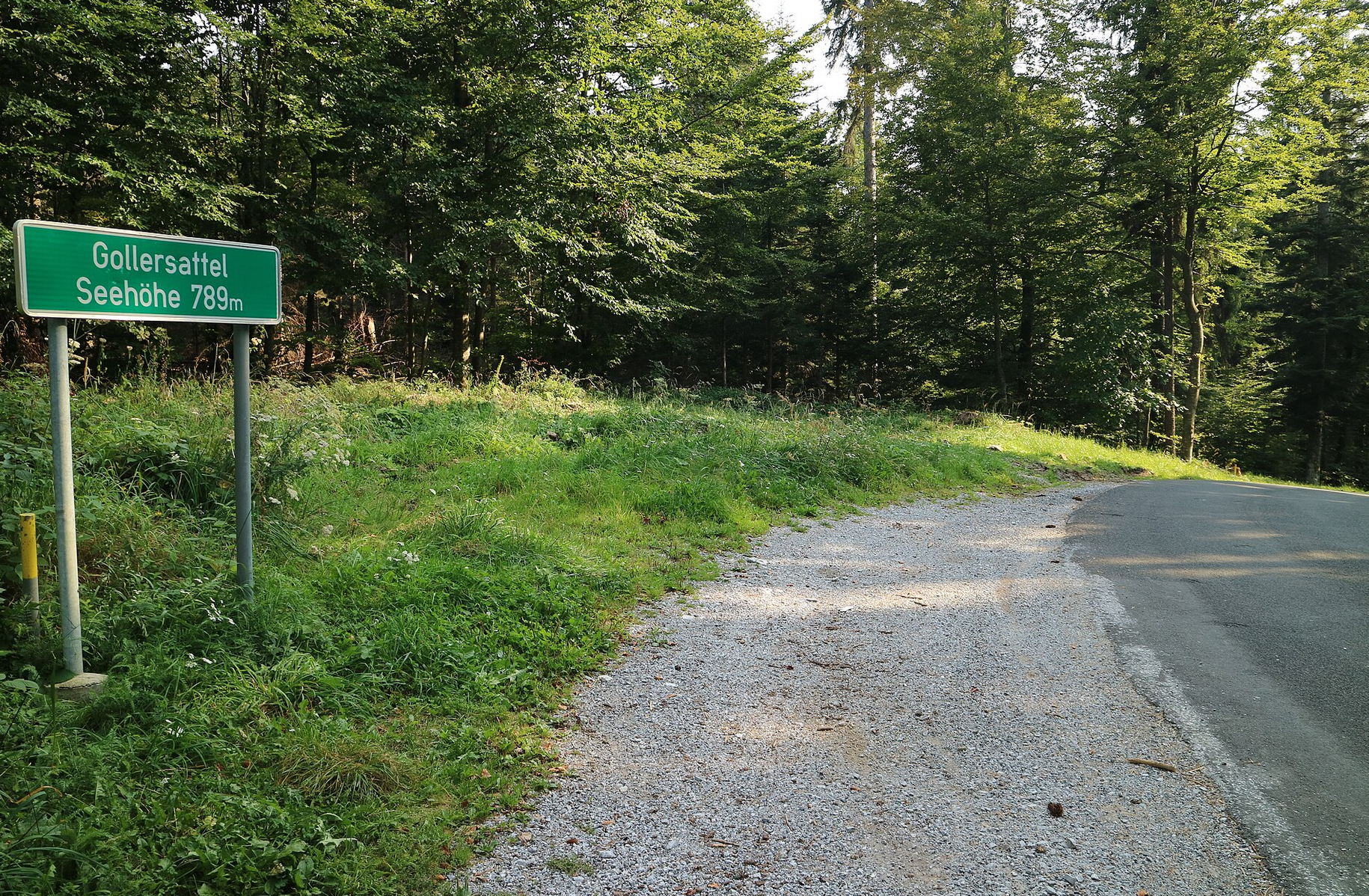 Bei der Einmündung des Moderbaches in die Raab bei Arzberg (521 m) schlängelt sich die Landesstraße L 357 als Gollerstraße vom rechten Raabufer mehrere kleine und teils namenlose Raabzuflüsse querend (Schneiderbach, Schluderbach, etc.) zum Talrand des Raabtales empor, erreicht nach 4 km diese Passhöhe und führt nach Querung des Schwarzgrabens und des Waschbaches in die Ortschaft Garrach (682 m) hinunter, die im Quellgebiet des Rosenbaches liegt, der wie alle anderen obgenannten Bäche ein rechter Nebenfluss der Raab ist.
